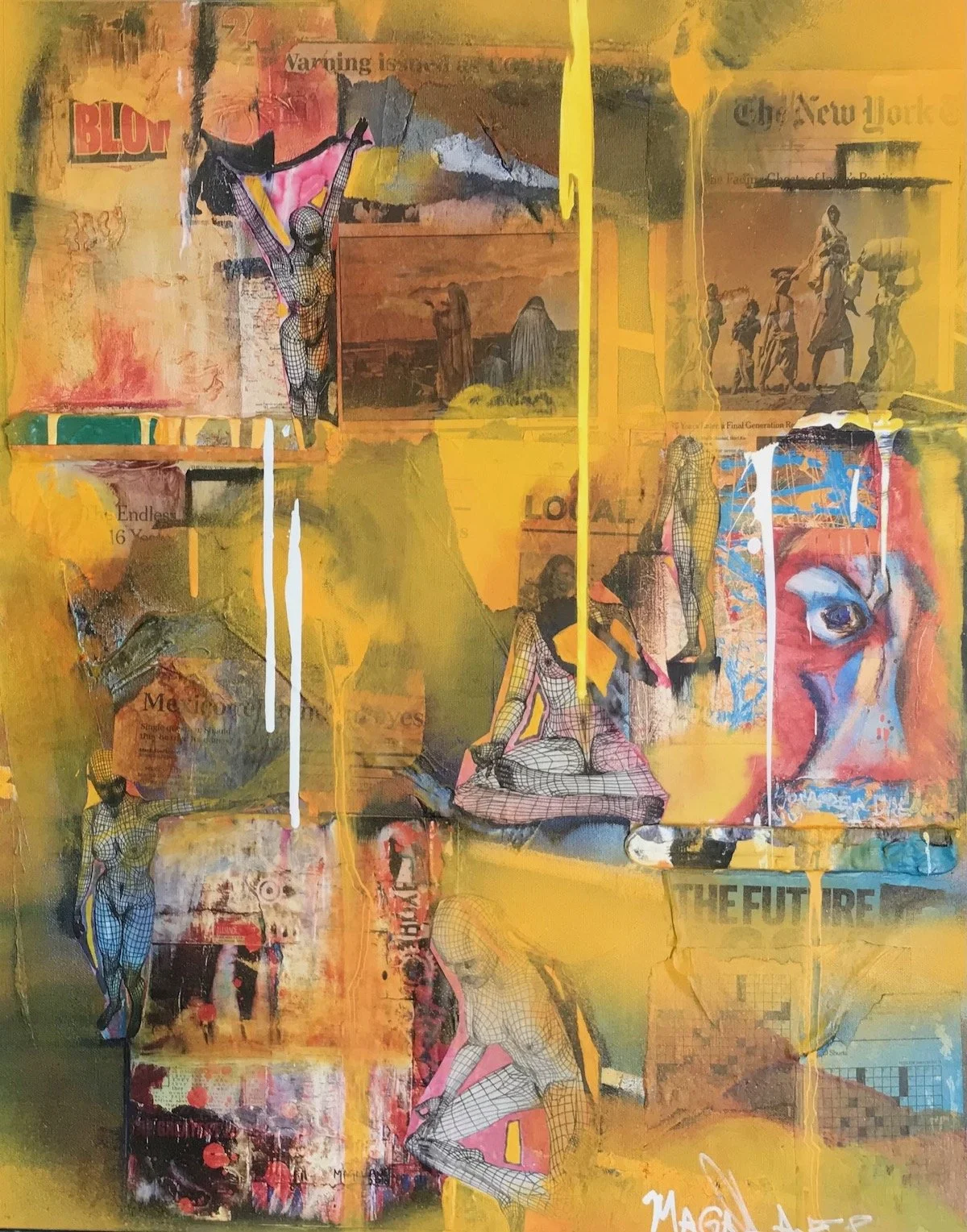 The Voyager is a new painting, that is a collage of some of my old paintings, cut up and implemented on a new canvas and the painted again. A process I enjoy creating!